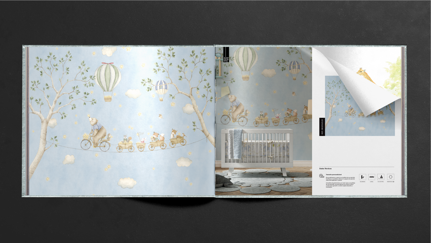 A nossa estratégia para este desenvolvimento, foi: criar uma identidade modular que sirva como porta-voz para as inúmeras estampas disponíveis no catálogo da empresa, transformando essa união em uma verdadeira obra de arte exclusiva.